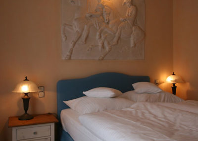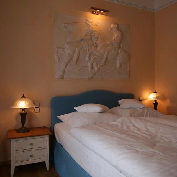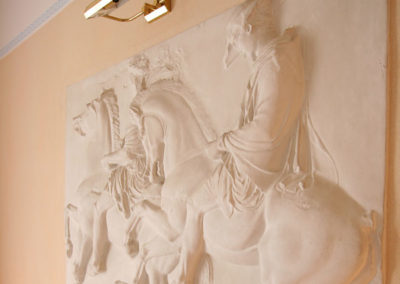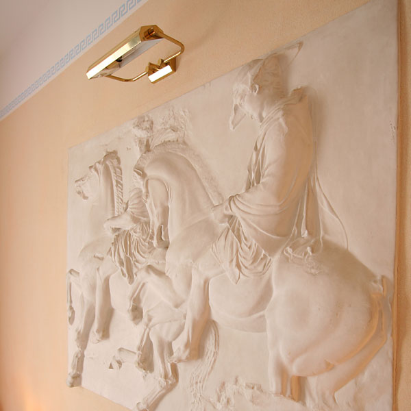 The dominant relief from the Parthenon frieze is reminiscent of an important culture. At the same time, the sand-colored walls and the light bring a breeze of the Mediterranean into Heidelberg’s old town.