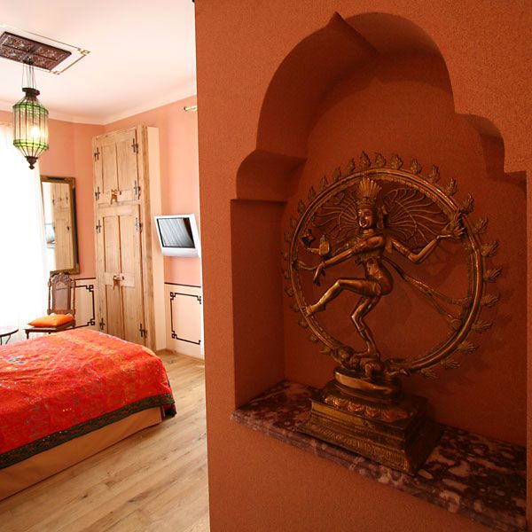When entering this room, you will be greeted by „Nataraja“ in their own temple. The colors, the fabrics and the unconditional furnishings give you an unadulterated piece of Indian living culture.