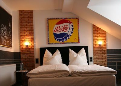 In search of strong motives for the realization of this room, we were in Manhattan for 4 days. The stay was far too short, but left deep impressions of a great metropolis. This room is a personal interpretation of “the city that never sleeps” and we think “you will love it”.